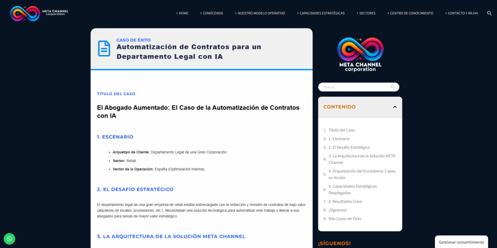 Meta Channel Corporation es una empresa que funciona como un ecosistema estratégico global donde se integran estrategia, tecnología y derecho para ayudar a compañías a operar, escalar y consolidarse en mercados complejos, especialmente en el eje Europa–Latinoamérica.